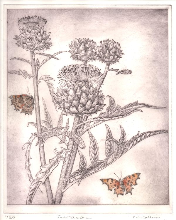 Copper Engraving, 20x250cm, printed on Somerset soft white printmaking paper, hand coloured
